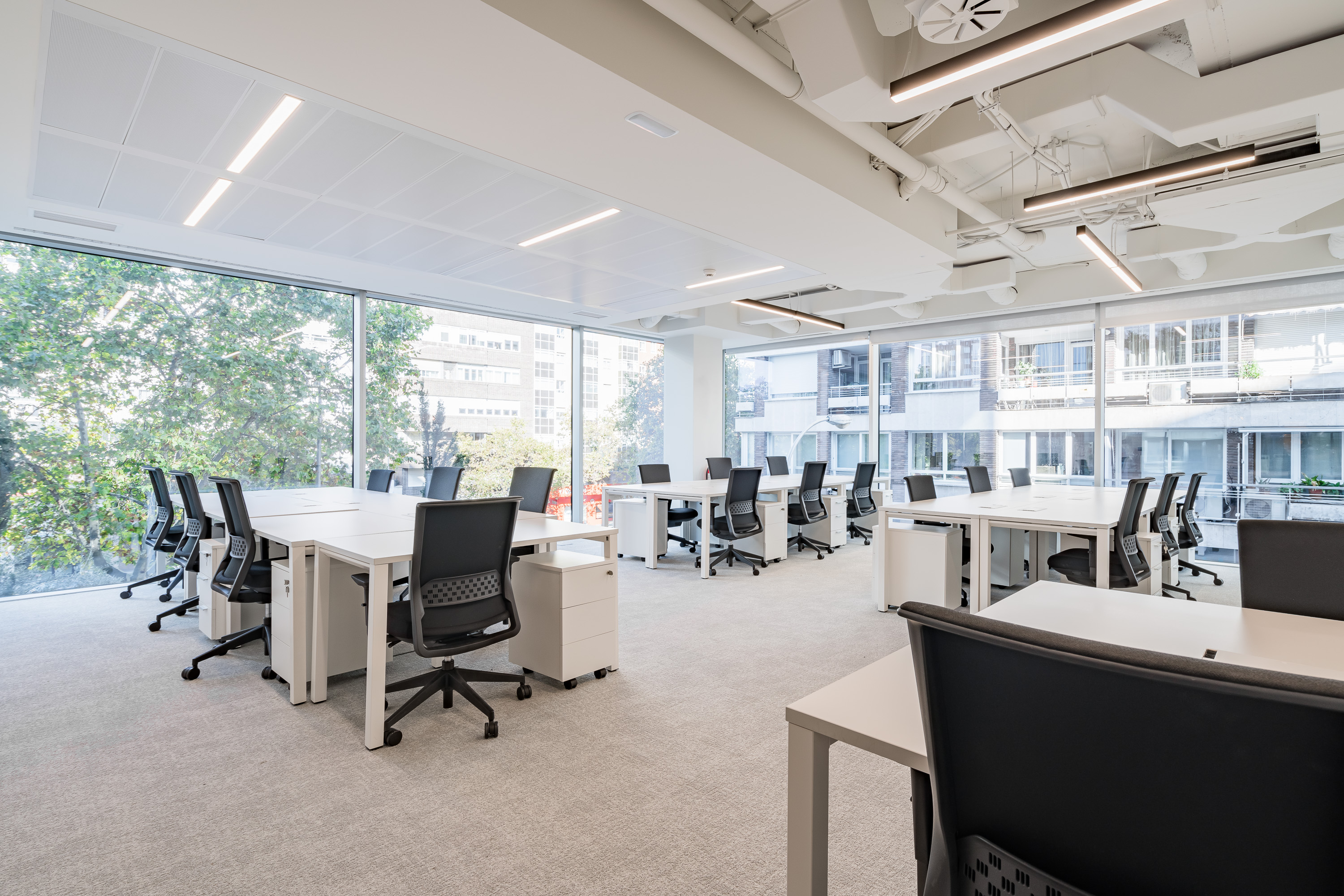 El coworking Príncipe de Vergara se encuentra situado en las tres primeras plantas de The Window Building, un edificio cuya obra fue realizada por Ortiz y León, especialistas en construcciones sostenibles. Y cuenta con certificación sostenible LEED Gold. Diseñado por Madrid In Love, materializa el concepto de home office, nacido a través del estudio comparativo entre trabajar en casa y hacerlo en una oficina. Este espacio está dividido en apartamentos de trabajo donde conviven diferentes comunidades de empresas, pero sin olvidarnos de las zonas comunes, salas de reuniones y formación donde crear sinergias y colaboraciones. El edificio cuenta también con patios ingleses y una gran zona ajardinada donde descansar o trabajar, lo que tú prefieras.