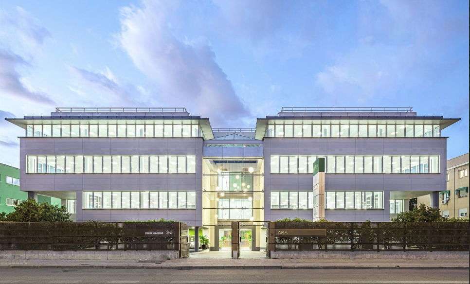 O edifício, reformado em 2023, caracteriza-se por seu design biofílico e sustentabilidade. Com certificação BREEAM e sistema fotovoltaico na cobertura, economiza 30% de energia, reduzindo sua pegada de carbono. Os jardins externos criam um espaço verde na cidade, e o átrio central oferece amplitude e luz. Possui também o selo internacional de acessibilidade AIS, garantindo um ambiente inclusivo.